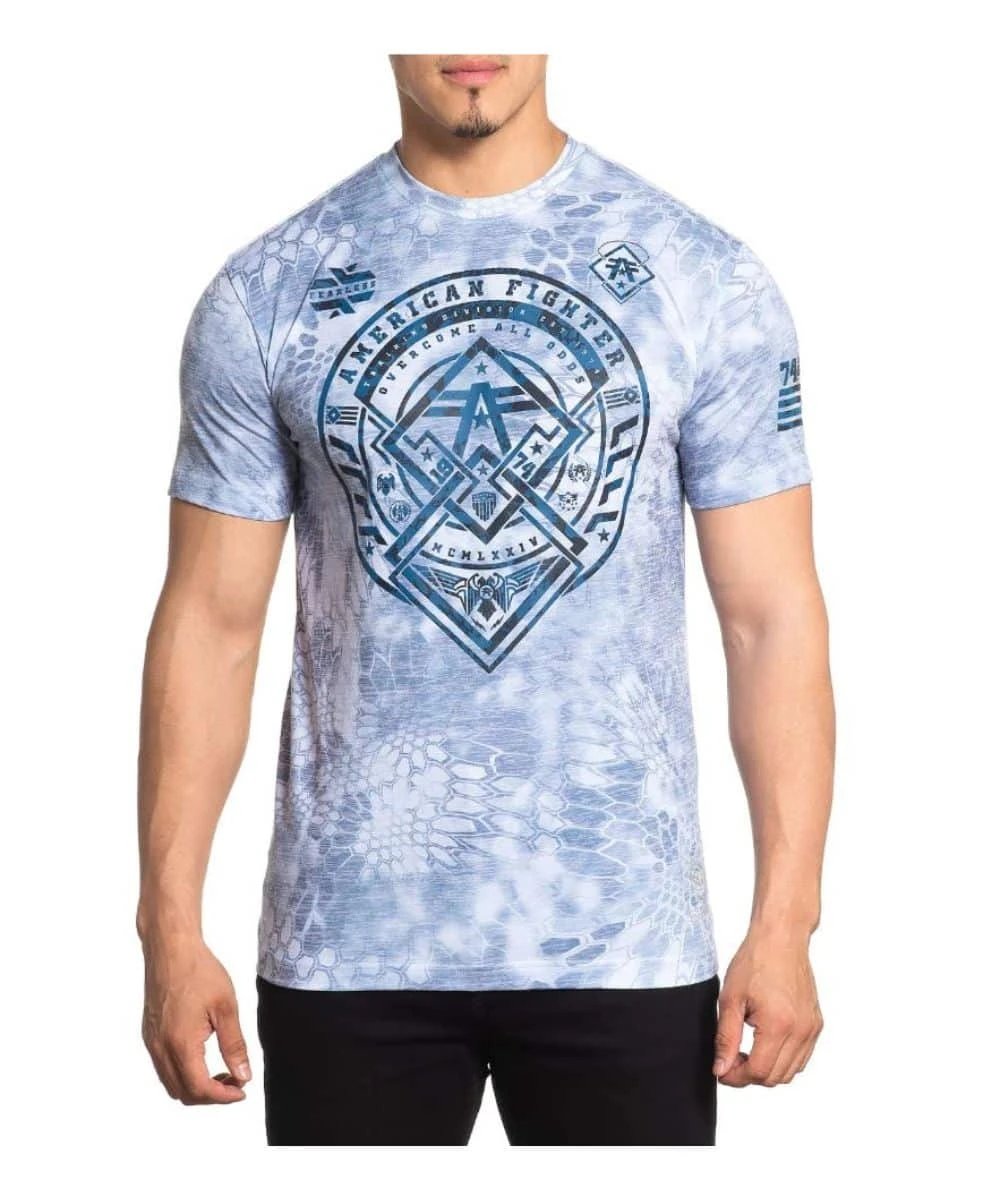 55% Cotton/ 45% Polyester; Color: White With Slate Kryptek Sublimation; Design Is Light And Dark Navy; Short Sleeves; Crew Neck; Tagless; Style #FM13580