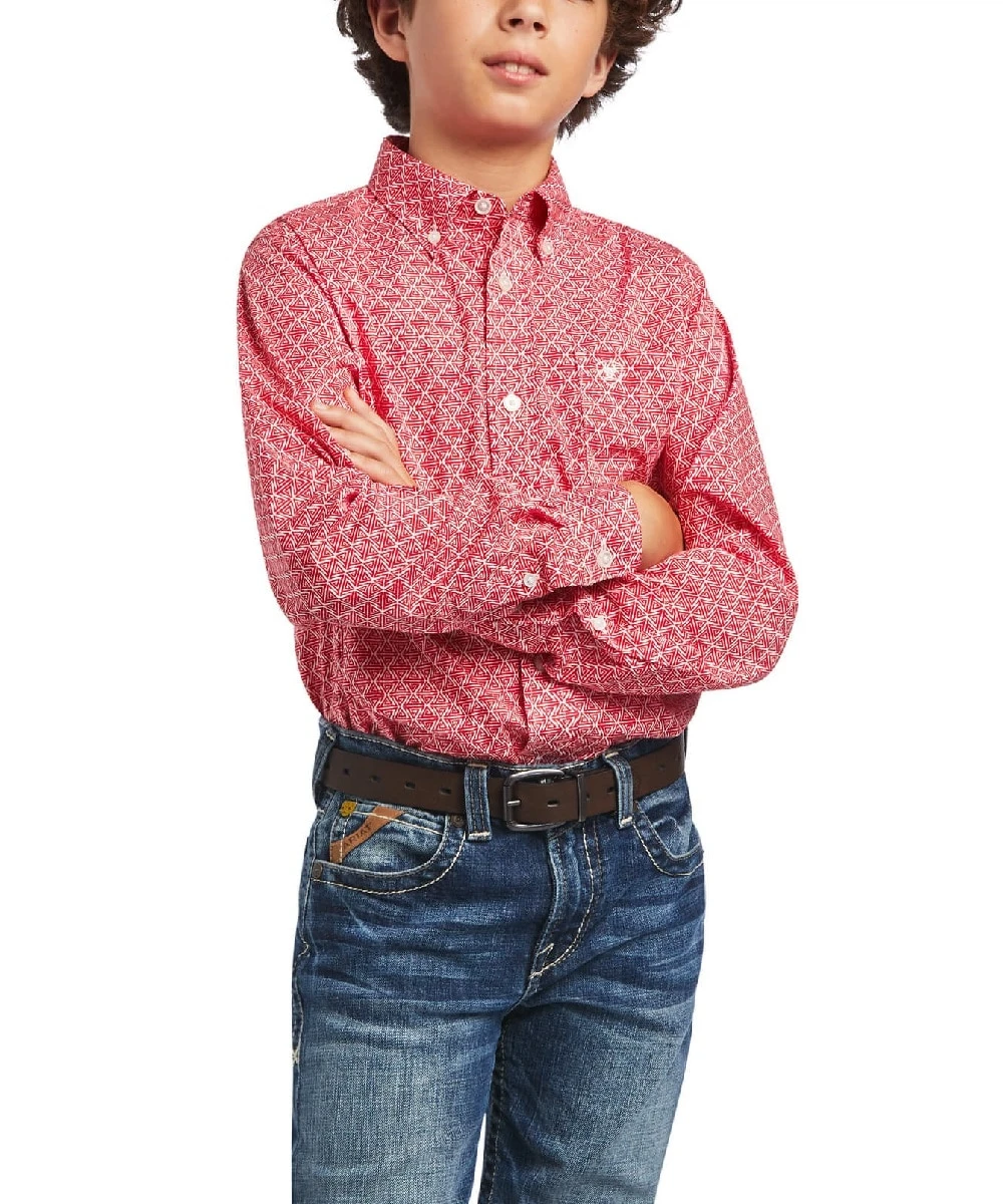 97% Cotton/3% Spandex; Performance Stretch Fabrication; Button Down Collar; Button Cuffs; Single Open Pocket With Ariat Embroidery; Greater Arm Mobility For Freedom Of Movement; Straight Back Yoke With Box Pleat; Woven Placket Label; Color: Heartfelt Red And White Print; Back Embroidered Logo; Style #10040739
