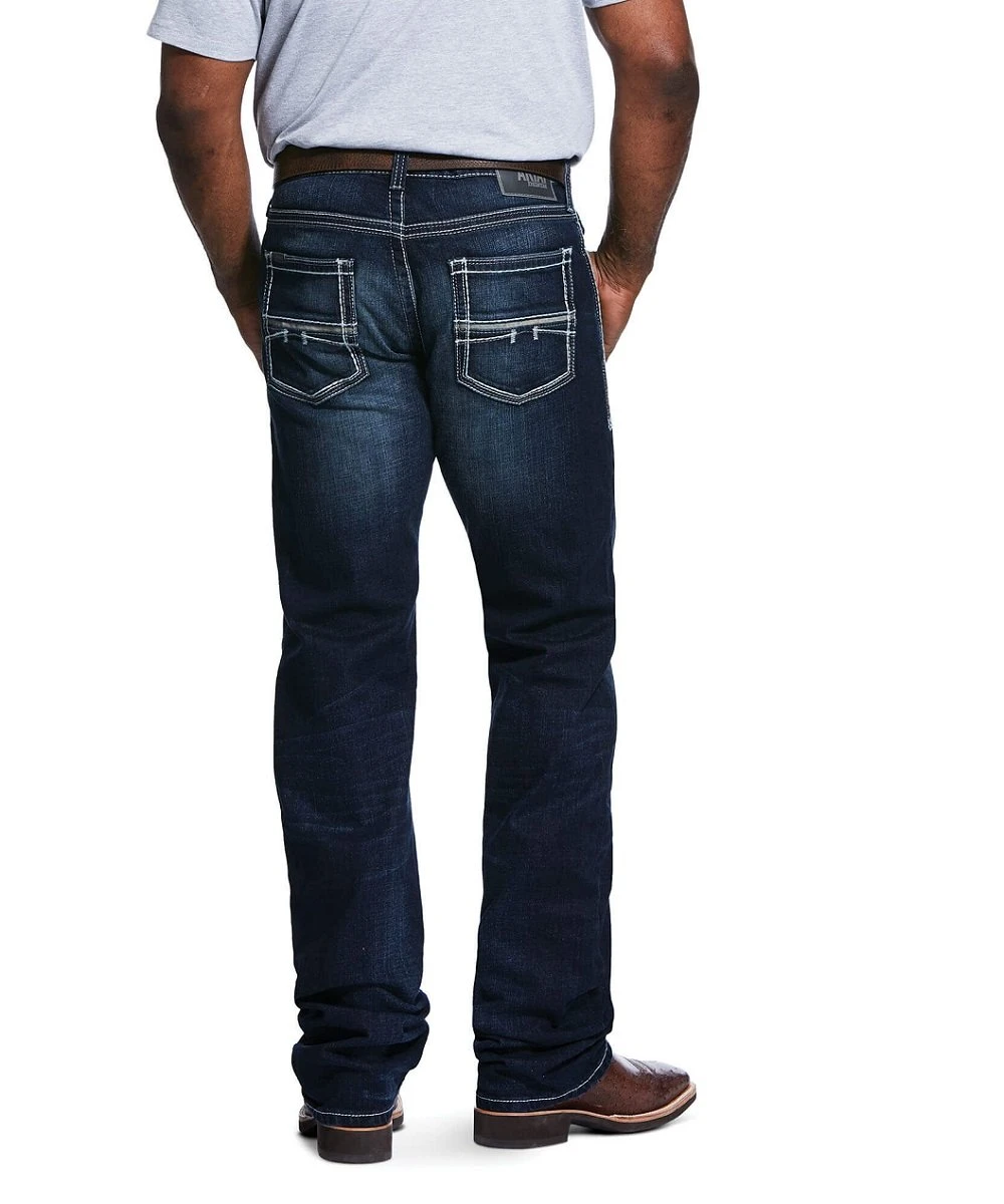 99% Cotton/1% Spandex, 13.5 Oz. Ring Spun Stretch Denim; Low Rise; Slim Through Seat And Thigh; Dark Wash With Fashion Back Pocket; No Rub Comfort Seams; Anchored Belt Loops; Extra Deep Front Pockets; Stackable Straight Leg; Style #10032088