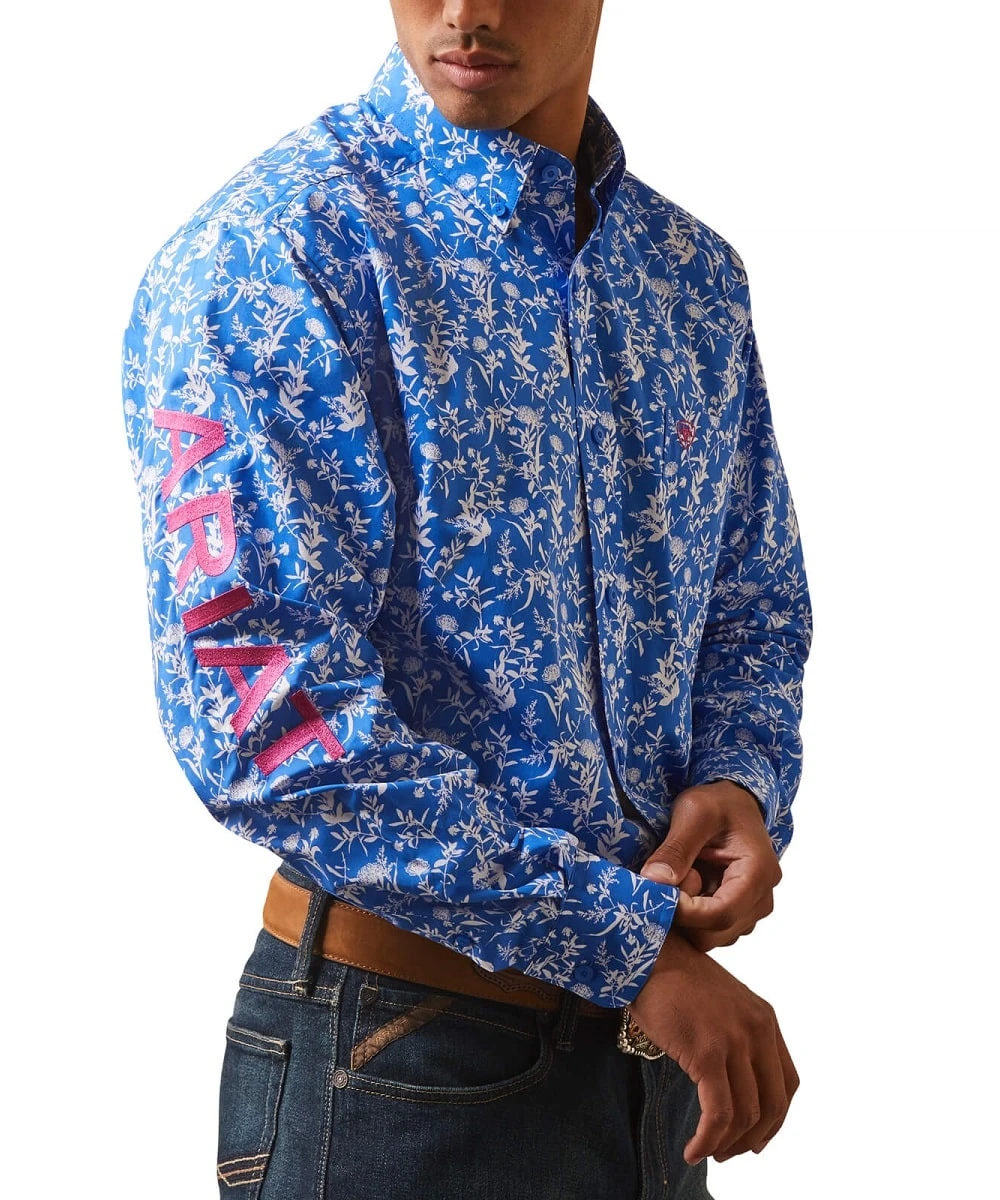 100% Cotton; Fitted/Slim Fit Through Chest And Waist; Long Sleeve; Classic Button Down Collar, Placket, And Cuffs; Open Left Chest Pocket; Logo Embroidery On Sleeve, Pocket, And Back Yoke; Straight Back Yoke With Pleat; Color: Blue Floral Print; Style #10043798