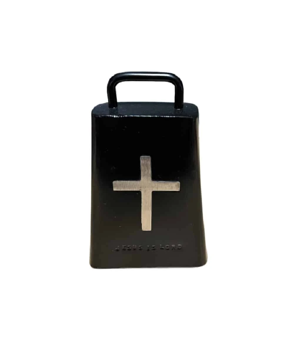 Pickup Bell; Color: Black With Silver Cross; Front Of Bell Reads: Jesus Is Lord; Measures Approximately: 6 1/2″ H X 4 1/8″ W (At Bottom); Style #PICKUPBELL