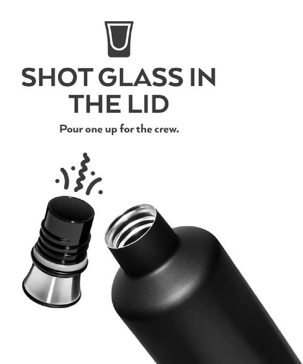 25 Oz Canteen With Two Functions; Keeps Your Spirits Ice Cold With The Included Leak Proof Twist Off Lid That Doubles As A 1.5 Oz Shot Glass; Or Screw On The Included Straw Lid With A Durable Easy Carry Handle And Use It As Your All Day Hydration Bottle; Color: Dark Aura; No Slip Base; Keeps Drink Perfect Temp; Perfect For Travel And On The Go; 12″ H; 10 1/4″ Circumference; Style #RH25DA