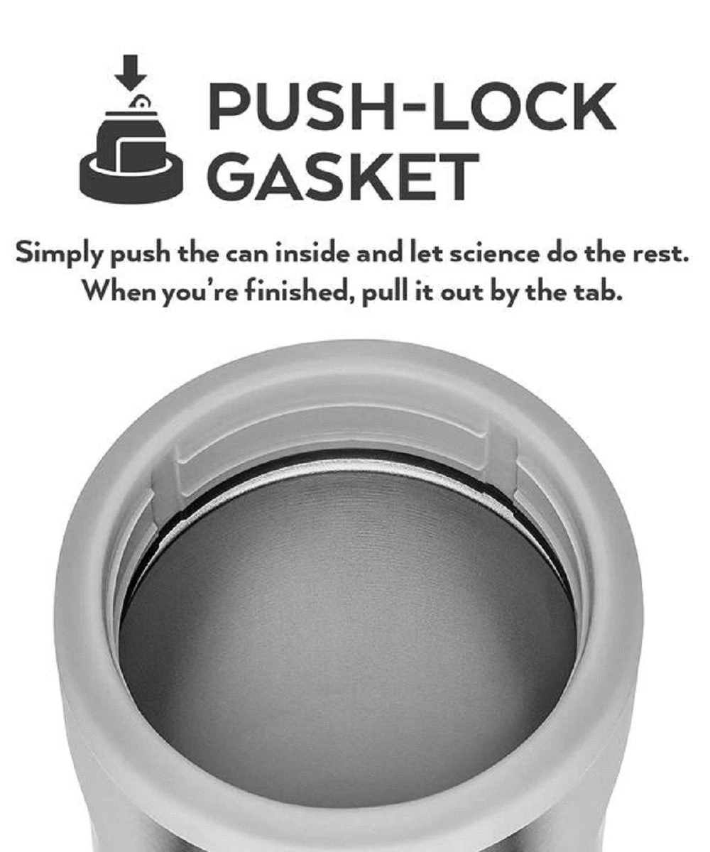 Triple Insulated Stainless Steel; Can Cooler That Doubles As A 12 Oz Tumbler; Includes BevLock Leak Proof Lid; Push-Lock Technology Makes Inserting And Removing Your Can A Breeze; Non Slip Base; Gasket Adapter Allows You To Use With All Your Favorite Brews; Fits Most Standard 12 Oz Cans; 4.75″ Height; 9.42″ Circumference; Color: Forrest Camo; Style #HD12GC