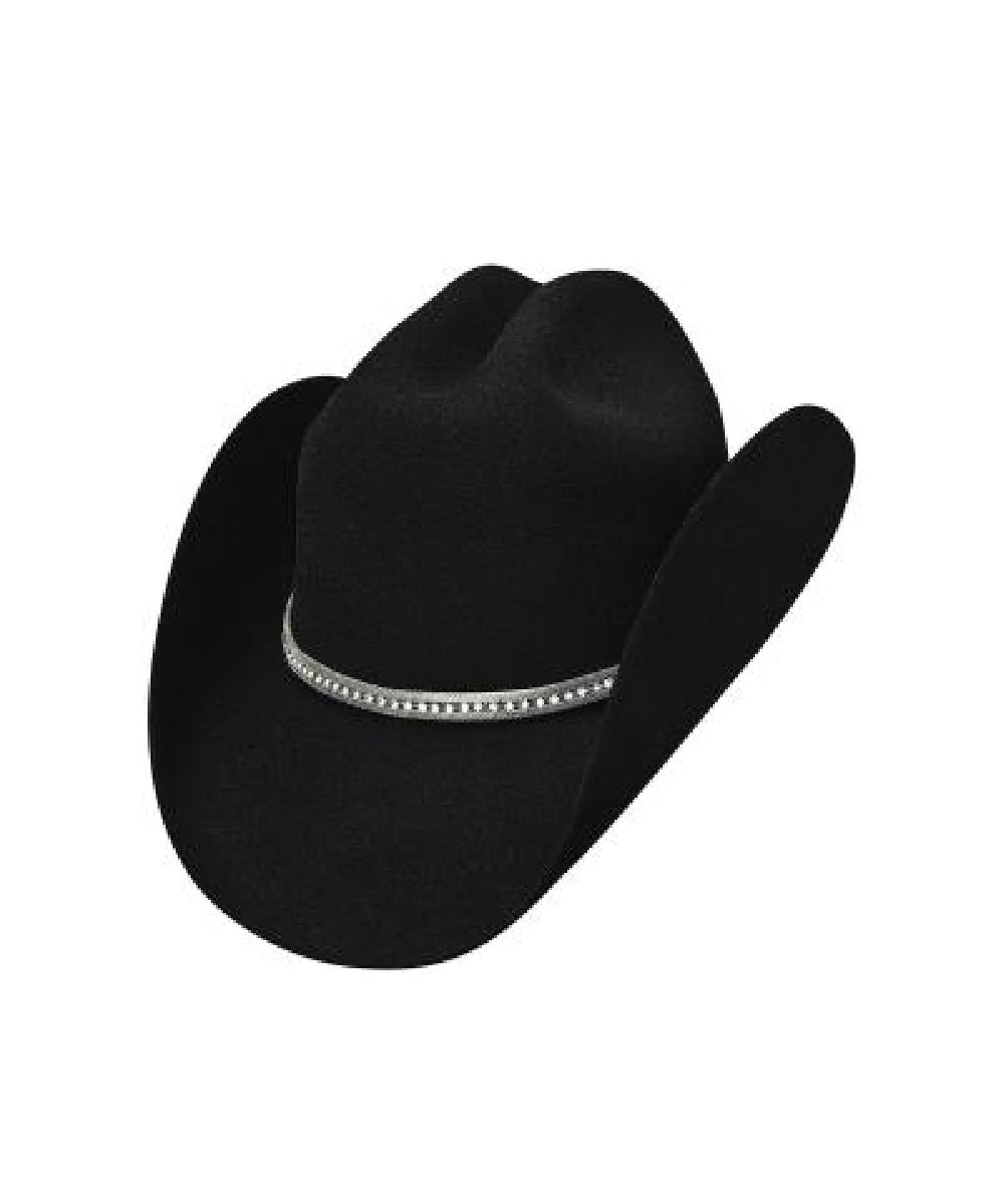 8X; Fur Felt Blend; 3 3/4″ Brim; Cattleman Crown; Black And White Hat Band With Rhinestone Crystal Accents; Style #0564BL