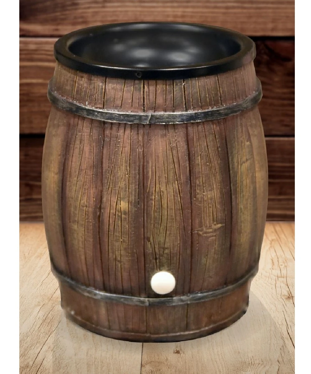 Hand Crafted Ceramic; Brown Bourbon Barrel Design; No Light Bulb Required; Safety Timer Included; Timing Intervals: 2,4 & 6 Hours; Measures Approximately: 10″ D X 4″ W X 6″ H; Style #46015