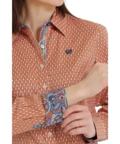 Printed Cotton Plain Weave; Long Sleeve; Button Down Collar, Placket, And Cuffs; Green Buttons; Single Open Chest Pocket With Logo Embroidery; Color: Green Diamond Print; Style #MTW7060310