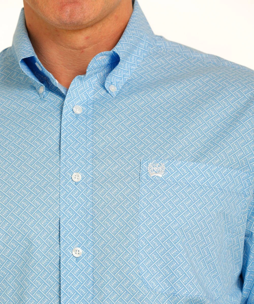 Printed Cotton/Spandex Plain Weave; Classic Fit; Long Sleeve; Button Down Collar, Placket, And Cuffs; White Buttons; Single Open Chest Pocket With Logo Embroidery; Color: Blue/White Diamond Print; Style #MTW1105540