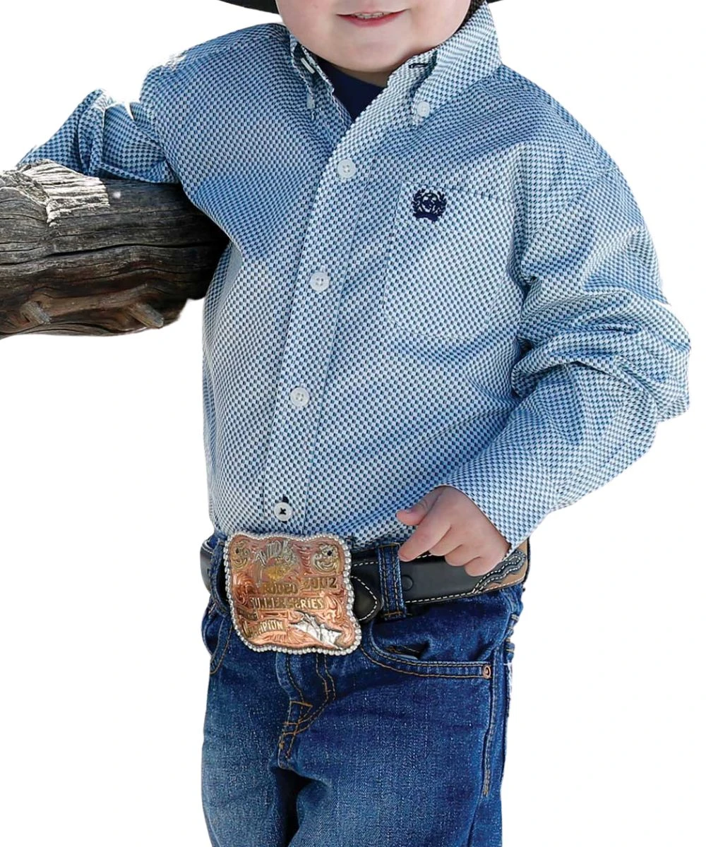 Printed Cotton Plain Weave; Long Sleeve; Button Down Collar, Placket, And Cuffs; Cream Buttons; Single Open Chest Pocket With Logo Embroidery; Color: White/Blue; Style #MTW7061268