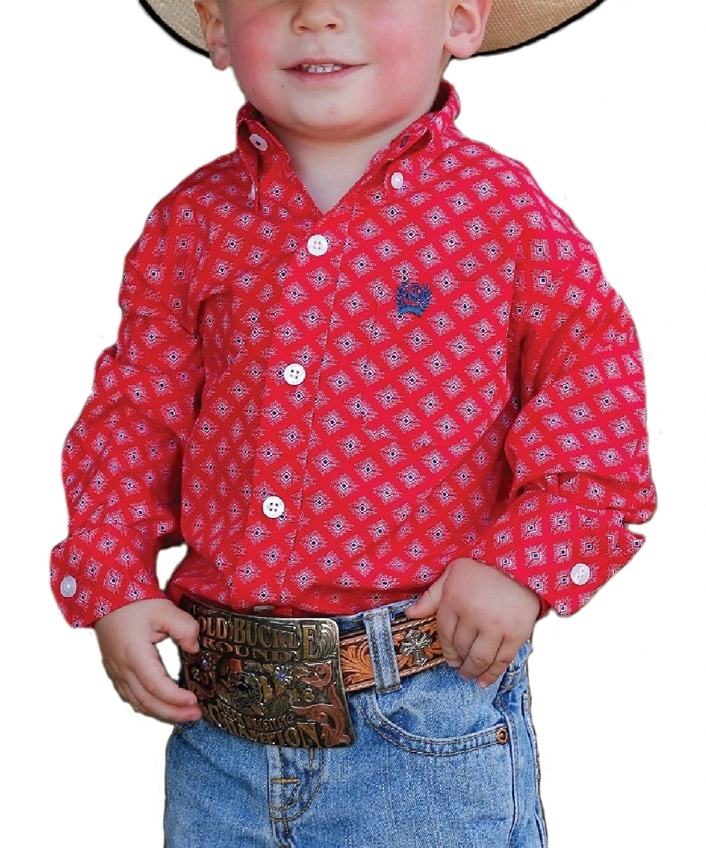 100% Cotton Plain Weave; Long Sleeve; Button Down Collar; Button Front And Cuffs; Single Open Chest Pocket With Cinch Embroidery; Blue And White Diamond Print Design; Color: Red; Matches With Dad #MTW1105398; Style #MTW7061284