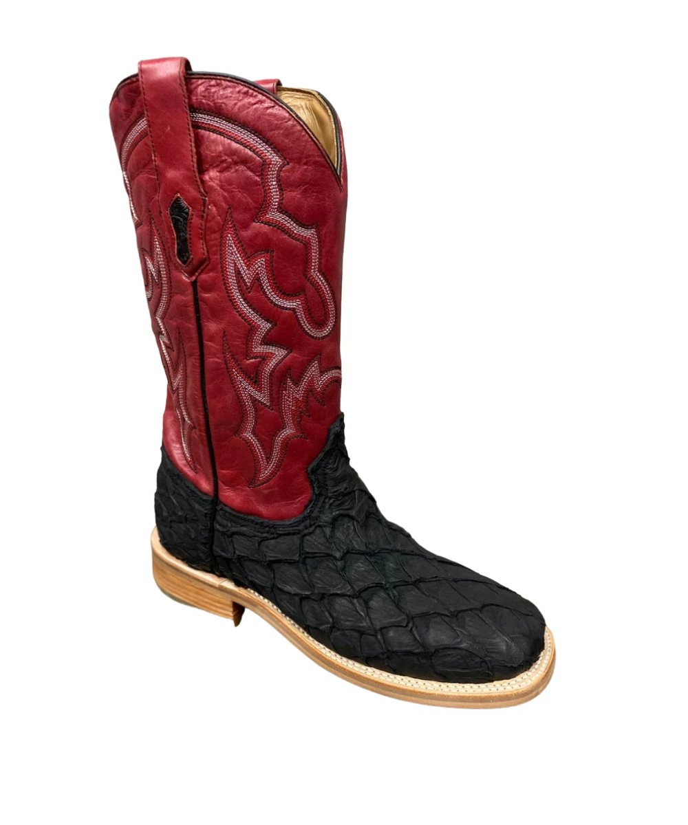 Black Fish Foot; Red Leather Upper With Black And White Stitching; Leather Sole; Style #A4049