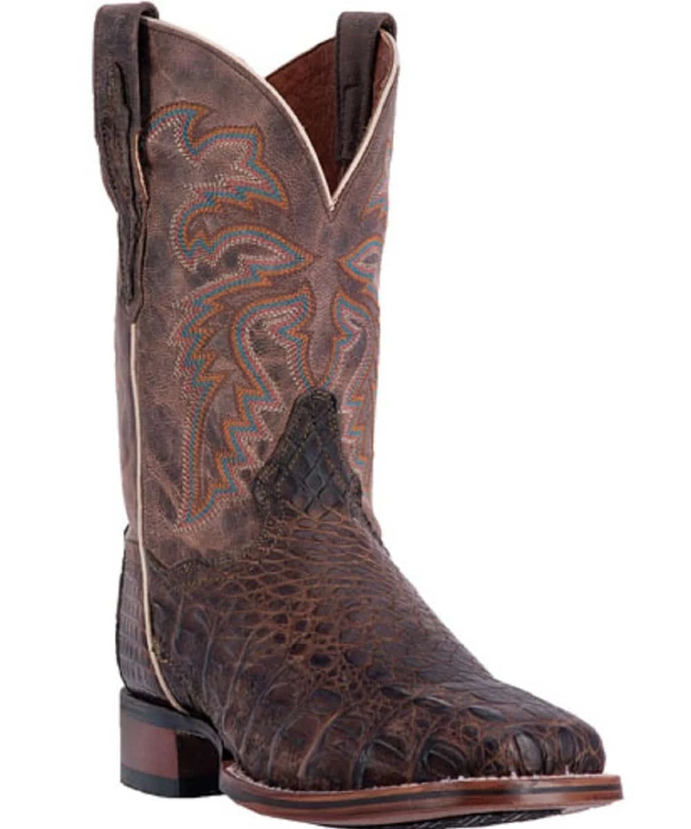11″ Shaft; Color: Distressed Brown Shaft/Brown Oiled Foot; Fully Leather Lined; Double Stitch Welt; Overlay Designed Pull Straps; Multi Colored Eight Row Stitching Design On Shaft; Accent Piping Down Sides; Soft Strike Removable Orthotic Insole; Broad Square Toe; Certified Stockman Heel; Cowboy Certified Outsole; Style #DP3965