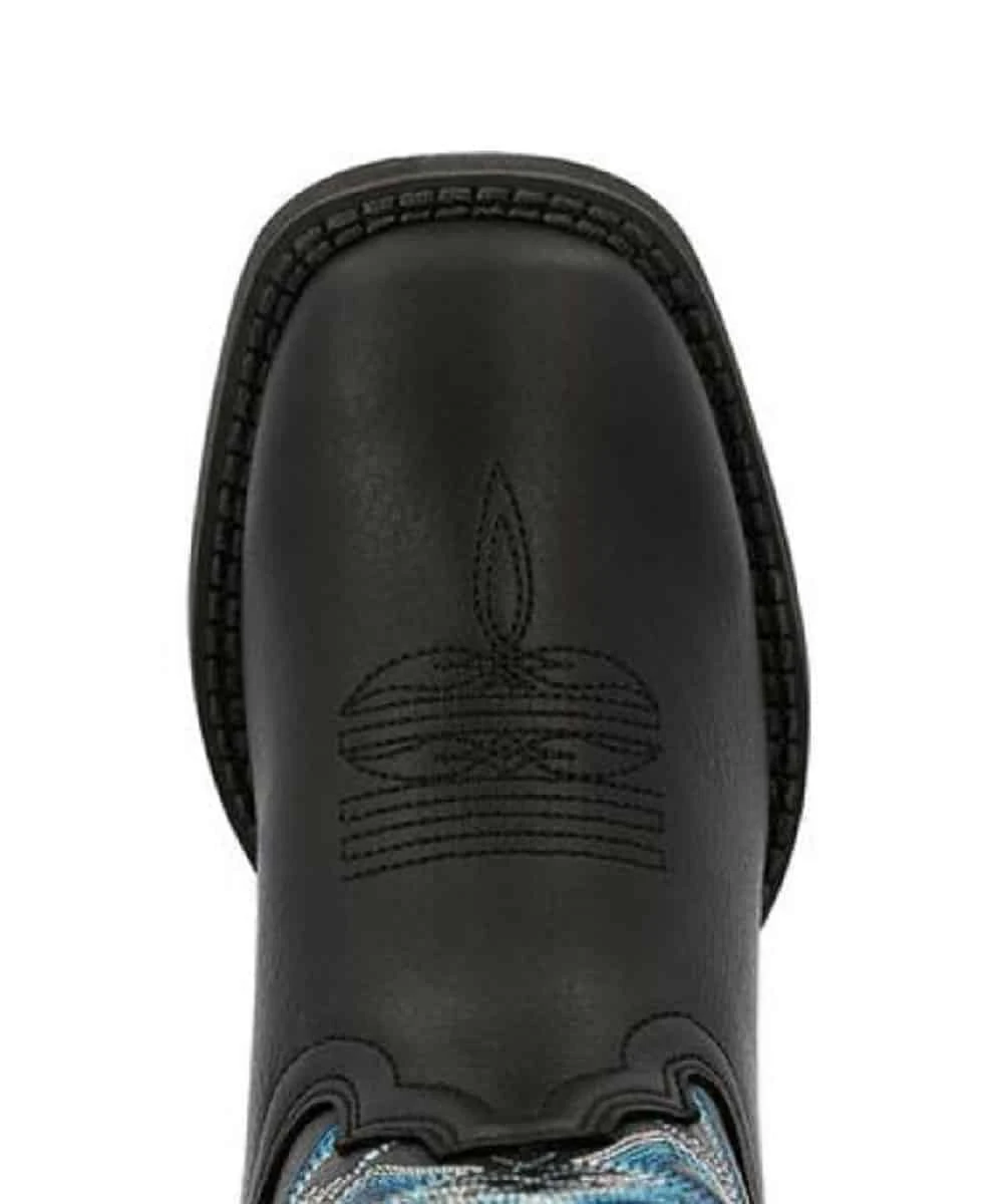 8″ Boot; Full Grain Leather; Soft Mesh Lining; Cushion Flex Insole; Double Row Sole Stitch; 1″ Heel; Rubber Outsole; Color: Black Onyx With Blue And White Accent Stitching; Style #DBT0236C