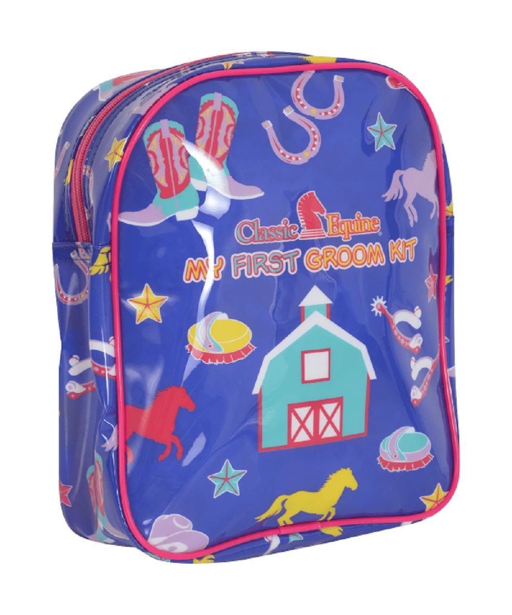 Perfectly Sized Backpack With Adjustable Straps To Fit Most Kids; Designed Especially For Little Hands Learning Grooming Basics; Complete With Mane And Tail Comb And Brush, Small Rubber Curry Comb, Sponge And Small/Large Body Brushes; Color: Navy; Style #KIDGROOM20NV