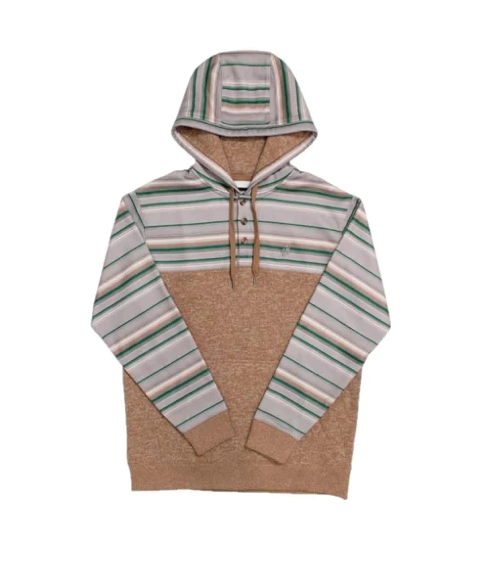 60% Cotton/ 33% Polyester; Signature Soft Feel; Double Lined Hood; Reinforced Cuffs And Waistband; Drawstring Adjustable Hood; Custom Braided Draw Cords; Strengthened Kangaroo Pocket; Hidden Phone Pocket; 1/4 Button Closure; Contrast Tan Torso; Multi-Color Striped Sleeves And Hood; Hooey Embroidered Logo On Chest; Style #HH1194TN