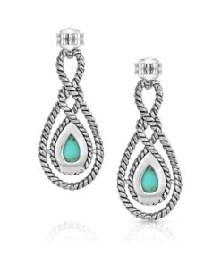 Hypoallergenic Stainless Steel French Hooks; Earrings: A Turquoise Sphere Dangles While Suspending A Hollow Teardrop Shape; Necklace: 19″ Chain; One Side Of Chain Is Connected Spheres And The Other Is Small Paperclip Linked Chains; A Clasp Holding Three Vertical Turquoise Spheres, Under The First Sphere A Teardrop Shape Appears; Teardrop Shapes Are Buffed, Silver-Toned With Sunbeam Etchings On The Side; Rhodium Over A Brass Base; Style #JS4895