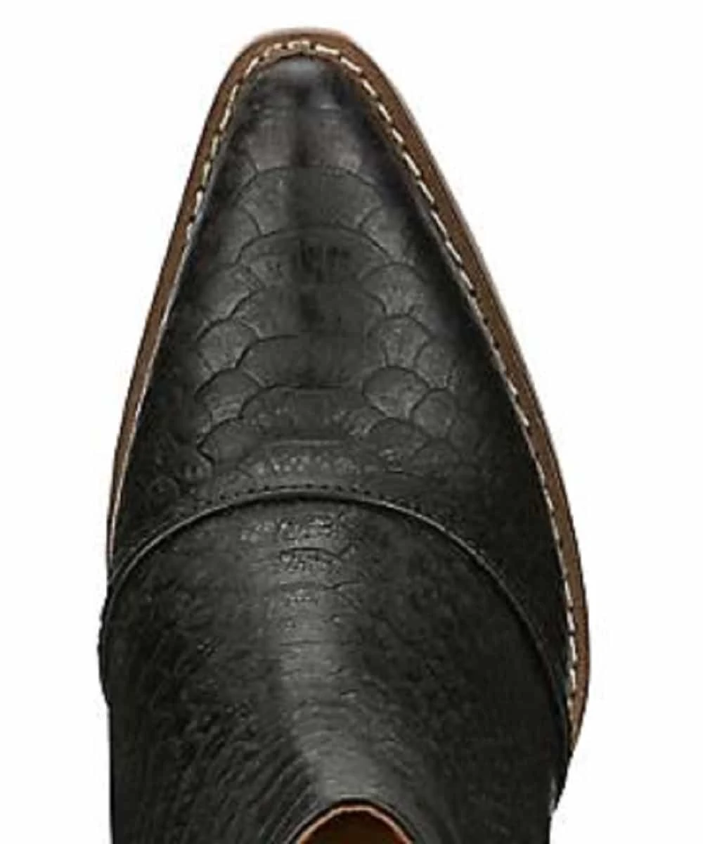 Black Rattle Snake Print Cowhide Vamp; 2 1/2″ High Heel; Brown Heel; Cushioned Insole; Pig Lining; Single Stitched Welt; Snip Toe; Rubber Outsole; Style #ME1920