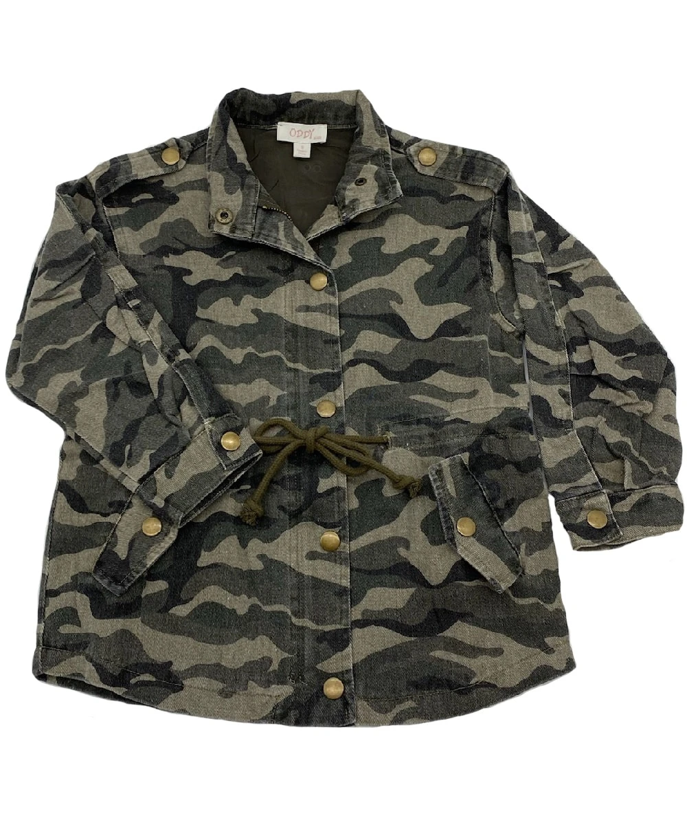 100% Cotton; Long Sleeve; Spread Collar; Zippered And Snap Front; Two Snap Flap Hand Pockets; Snap Cuffs; Drawstring Waist; Washed Camouflage Print; Style #IJ20570K