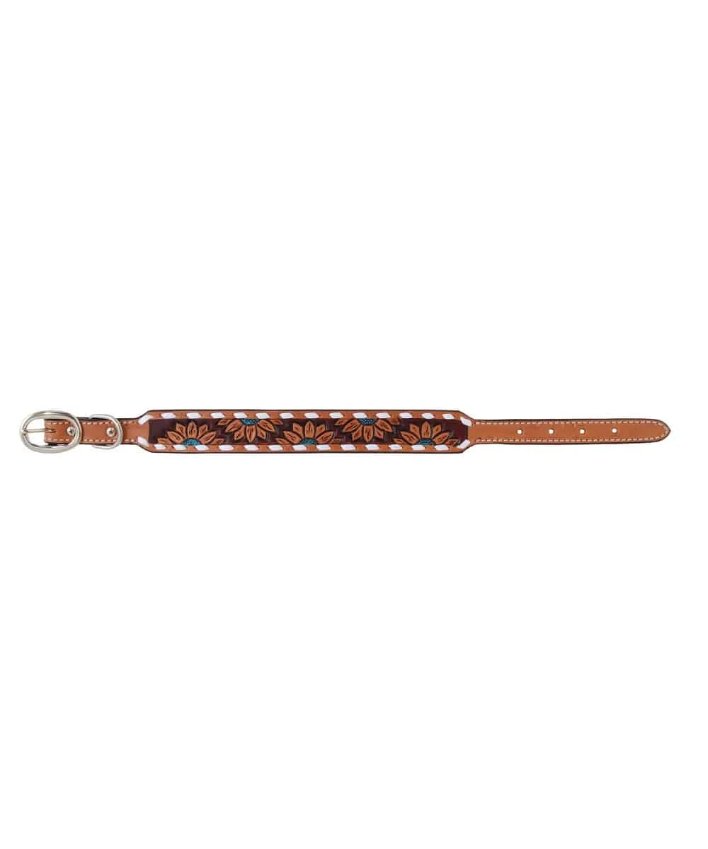 Size Large, 18″-20″; Hand Tooled Leather; Hand Painted Sunflowers With White Buckstitch; Finished With A TT Finish; Silver Toned Buckle; Style #RTDC416-L