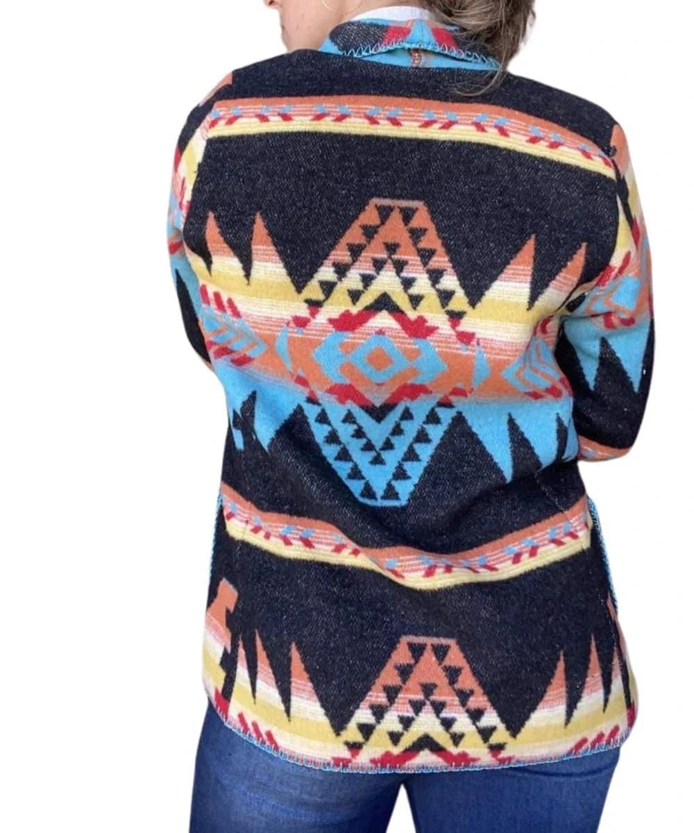Wool Blend; Unlined; Sawtooth Long Blazer With Princess Seams; Matching Patch Pockets; Turn Back Sleeves; 1 Concho Button Closure; Blanketstitch Finish; Style #877 ST