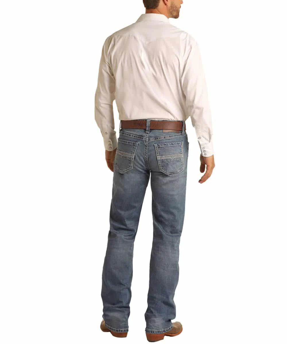 99% Cotton/1% Elastane; Relaxed Fit; ReFlex Stretch Denim; Mid Rise; Zip Fly With Button Closure; Whiskers And Hand Sanding; Five Pocket Styling; Double Barrel Back Pocket Design; Medium Vintage Wash; Straight Leg Jean; Style #M0S3574