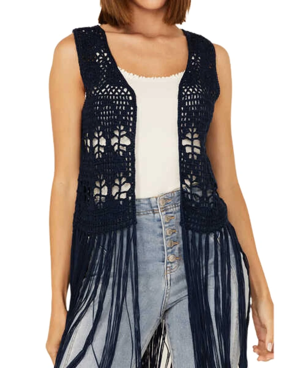 100% Acrylic; Knit Lace Construction; Fringe Hem; Color: Navy; Style #RRWT38RZNZ