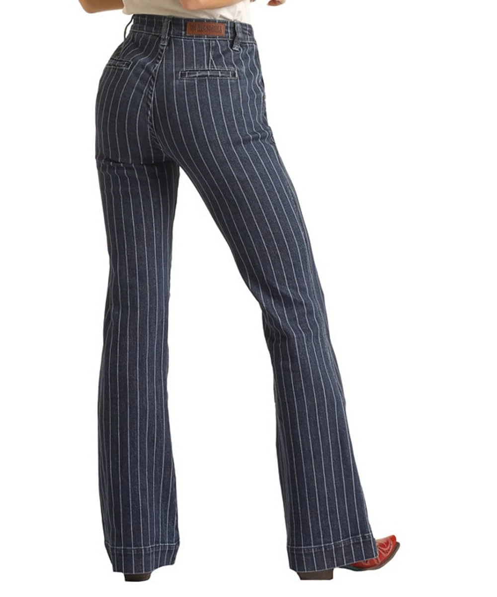 94% Cotton/4% Polyester/2% Spandex; Trouser; High Rise; Dark Wash With White Stripes; 1.75″ Below Waist; 22.5″ Leg Opening; Style #RRWD5HRZTX