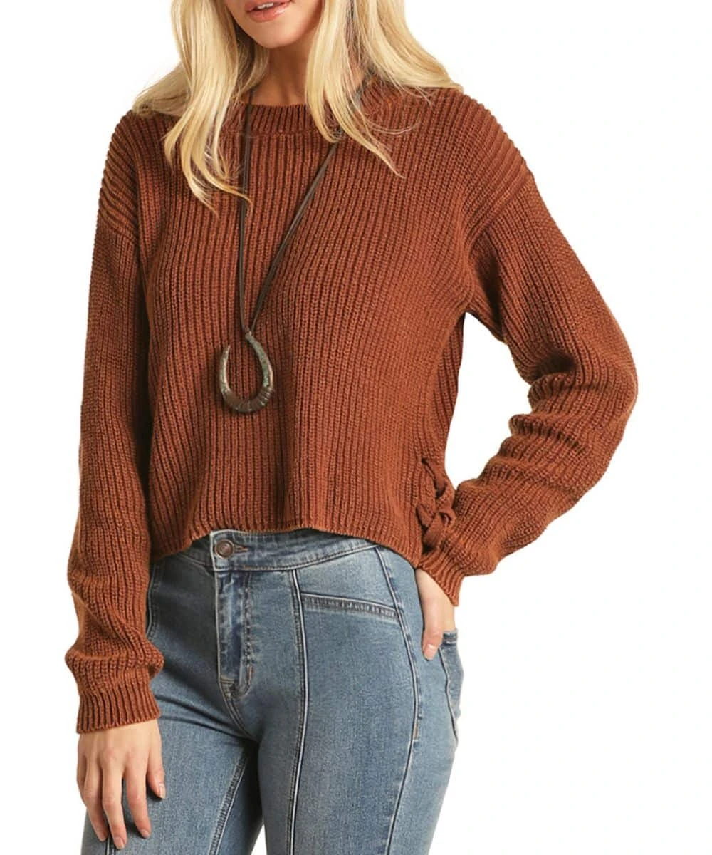 100% Cotton; Color: Brown; Long Sleeve; Side Slit With Tie Detail; Machine Wash Cold; Style #46-1181