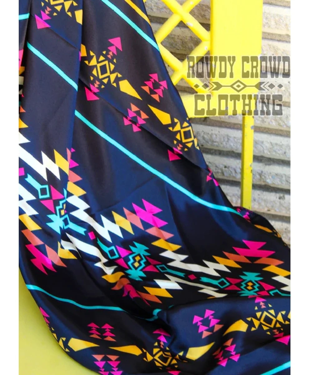 100% Polyester; Black, Light Blue, Pink, Orange, Yellow And White Apache Aztec Print; Measures Approximately 36″ X 36″; Style #APACHE AZTEC WR