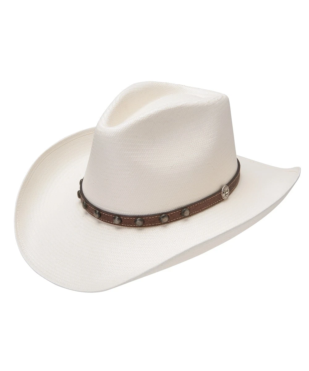 8X; 3 1/2″ Brim; Pinch Front Crown; Dri-Lex Sweat Band; Leather Hat Band With Antiqued Stud Accents And Stetson Logo Hat Pin; Color: Natural; Style #SSCPRS-4034