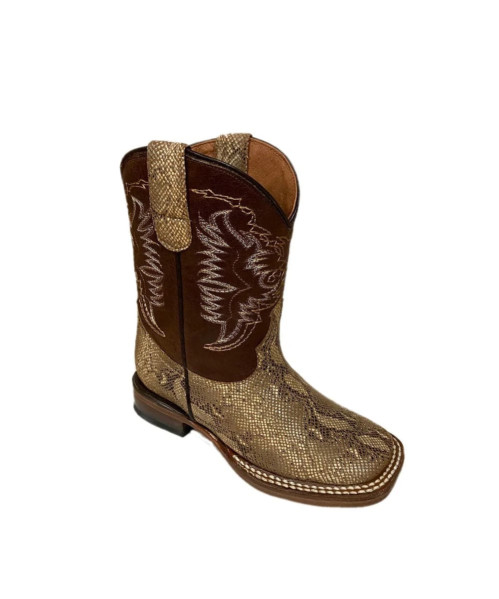 8″ Boot; Swine Lining; Carunga Lizard Print Foot/Brown Shaft; Accent stitching Design On Shaft; Double Welt; 1″ Walking Heel; Square Toe; Leather Outsole; Style #TMK200775