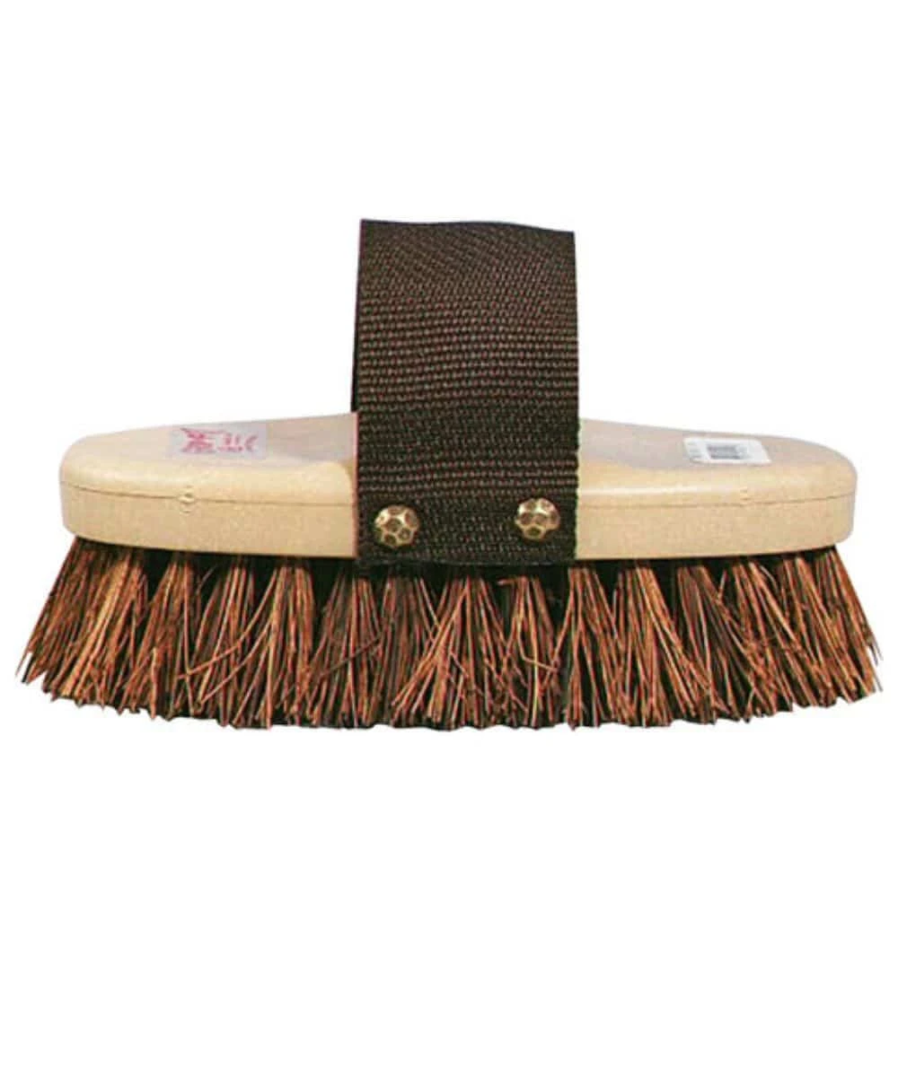 Stiff, Natural Palmyra Bristles With Web Handle Strap; Block Made From Moded Polypropylene Foam; Grip-Fit Horse Grooming Brush Allows A More Comfortable Shape To Better Fit Your Hand; Will Not Rot Or Mildew; Measures Approximately – Block: 7 5/8″ x 3 5/8″; Bristles: 1 3/8″; Color: Brown; Style #14476-1