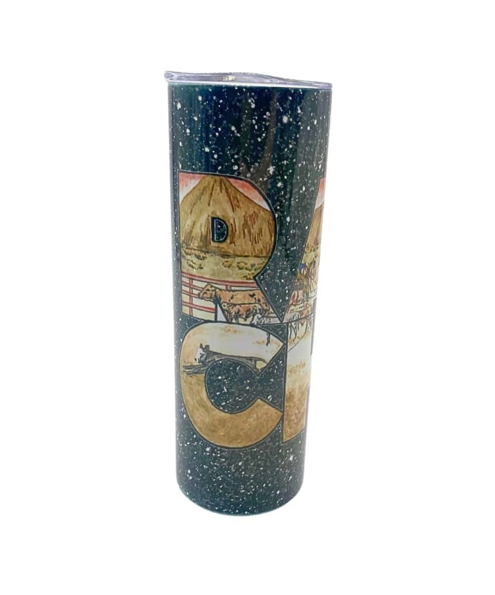 20 Oz.; Keeps Drink Hot Or Cold; Black Glitter Background; Tumbler Reads: Ranchy With Brown Western Background Print; Includes Straw And Lid; Style #RANCHY TUMBLER