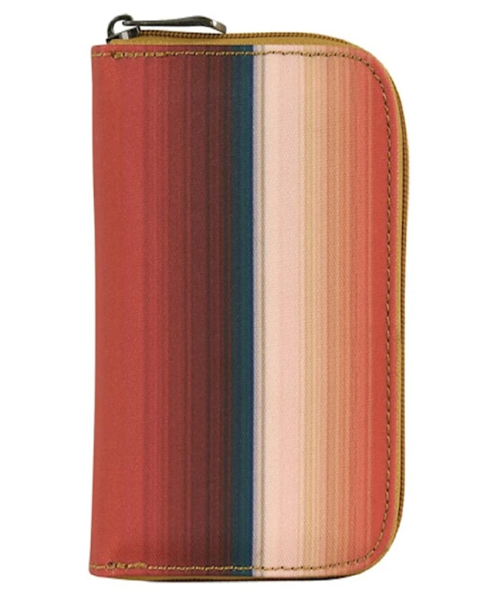 Justin Jewelry Organizer; Ombre Stripes; 1 Compartment; Multiple Jewelry Holders; 1 Zip Pocket; 1 Snap Flap Pocket; Zip Around Closure; Measures Approximately: 4.5″W x .5″D x 6.5″H; Style #2178779OMB