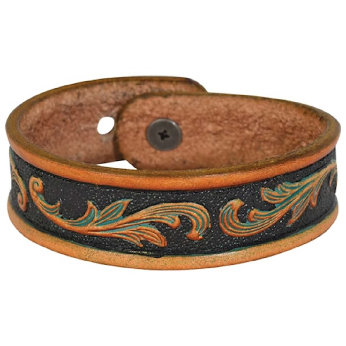 Genuine Leather; Tooled Pattern With Yellow And Turquoise; Iron Snap Closure; Style #22129BJ2