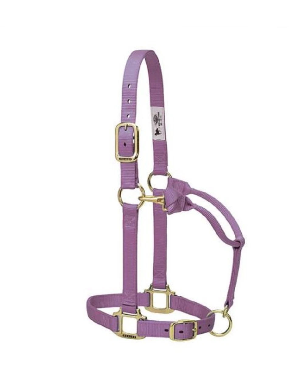 Top Nylon Construction; 1″ Halter; Heat Sealed Oblong Buckle Holes; Box Stitching At Stress Points; True To Fit Sizing; Adjustable Design; Comfortable Rolled Throat And Brass Plated Hardware; Looped On Throat Snap Is Non-Rust Solid Brass; Color: Lavender; Style #35-7035-BR