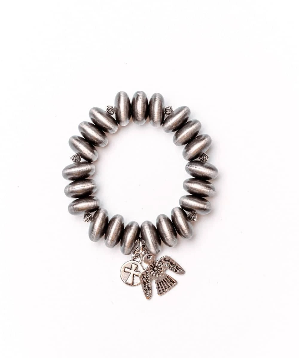 Faux Navajo Pearl; Thunderbird And Cross Charms; Stretch Bracelet; Style #BR560