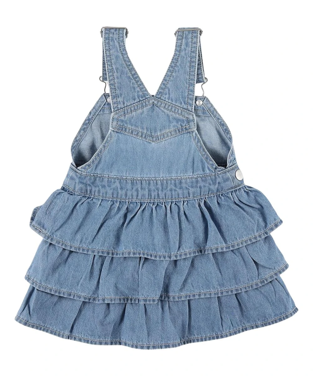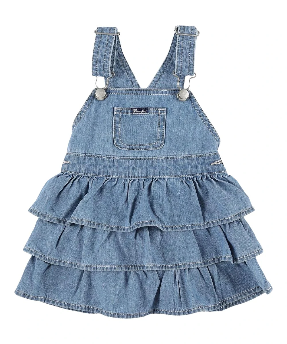 100% Cotton; Regular Fit; Sleeveless Dress; Overall Straps; Square Neckline; Single Open Chest Pocket; Ruffled Skirt; Color: Leah; Style #112328281