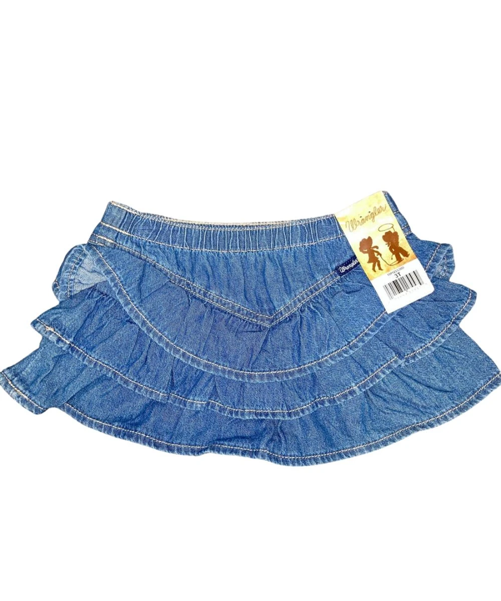 100% Cotton; Medium Wash Denim; Elastic Waistband; Layers Of Ruffles; Open Bottom/No Bloomers; Style #PQS530D