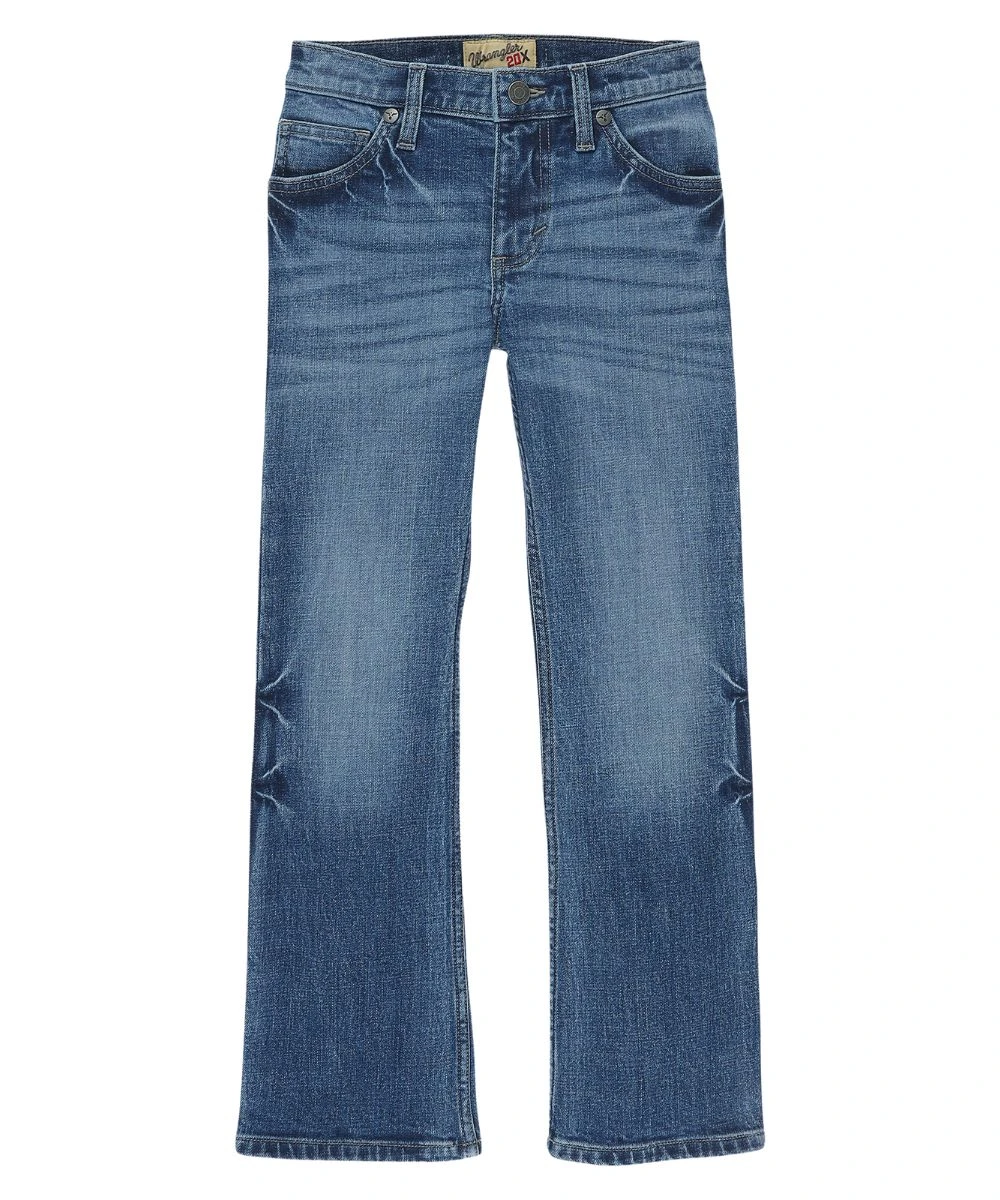 99% Cotton/1% Spandex; Slim Fit; Zip Fly With Button Closure; Internal Adjustable Waistband; Whiskering And Hand Sanding Detail; Five Pocket Styling; Fashion Stitched Back Pockets; Bootcut Jean; Medium Wash/River Glen; Style #112332655