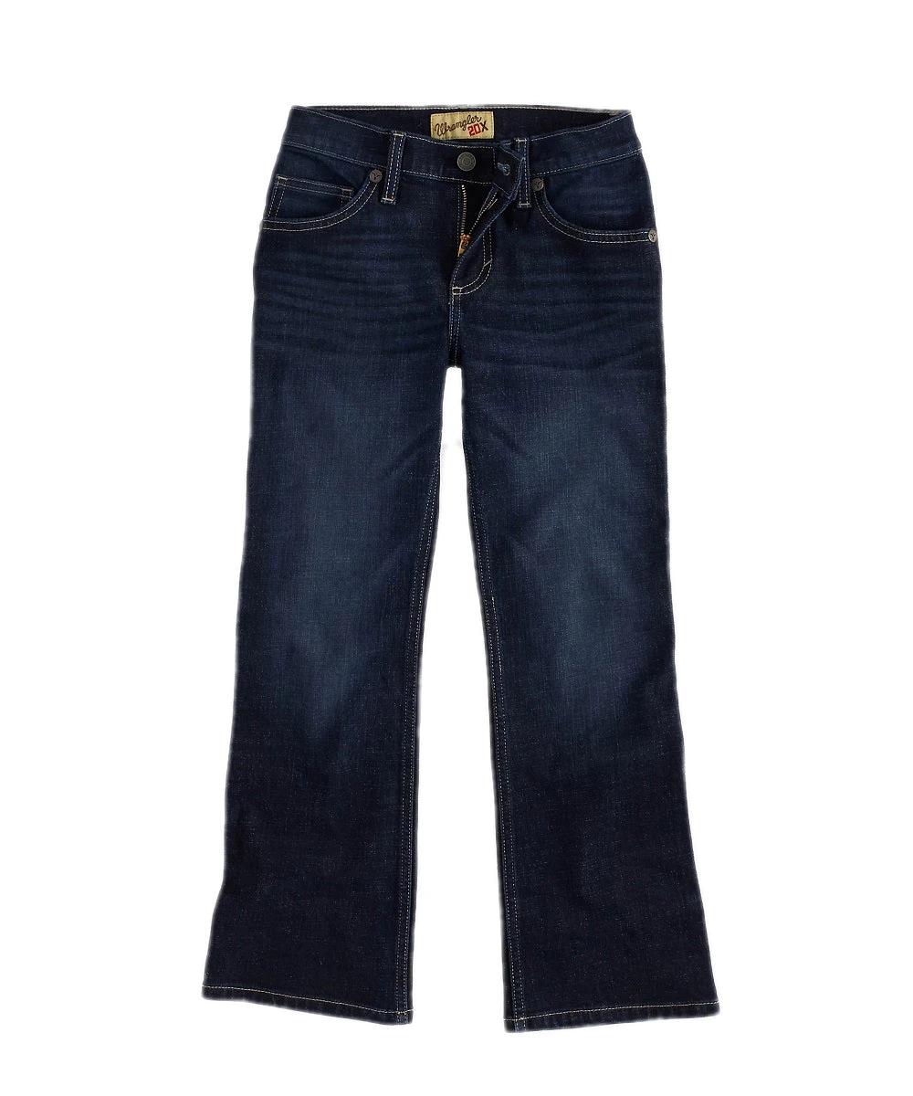 99% Cotton/1% Spandex, 11.7 Oz. Stretch Denim; Slim fit; Low Rise; Whiskers; Fading; Five Pocket Styling; Embroidered Design Back Pockets; Boot Cut; Style #42BWXAZ