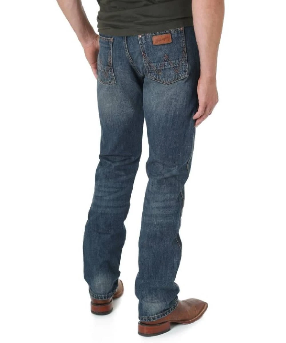 100% Cotton; Five Pocket Style; Dark Wash; Whiskering; Sanded Detailing; Sits Lower On Waist; Slim Seat And Thigh; Fits Over Boots; Style #88MWZDK